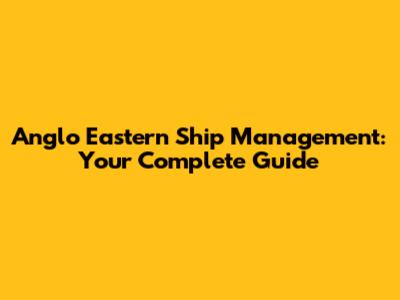 Anglo Eastern Ship Management: Your Guide