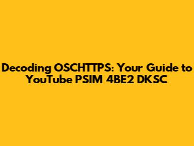 Decoding OSCHTTPS: Your Guide To YouTube PSIM 4BE2 DKSC