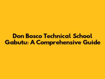 Don Bosco Technical School Gabutu: A Comprehensive Guide