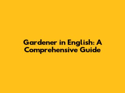Gardener In English: A Comprehensive Guide