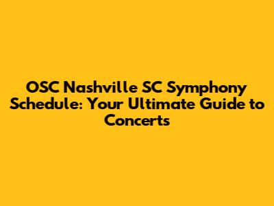 Unveiling the OSC Nashville SC Symphony Schedule: What to Expect